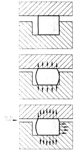 與O型密封圈一樣,矩形密封圈是可以用于雙向密封的固定密封件的。由于安裝時(shí)所施加的予接觸壓力,使矩形密封圈的貼合面徑向和軸向產(chǎn)生初始的密封性能。東晟密封認(rèn)為這種接觸壓力,是因液壓系統(tǒng)壓力而相應(yīng)加強(qiáng)的。這樣就產(chǎn)生了隨液壓系統(tǒng)壓力而增大的總密封壓力,其接觸壓力分布如圖1所示的一樣。